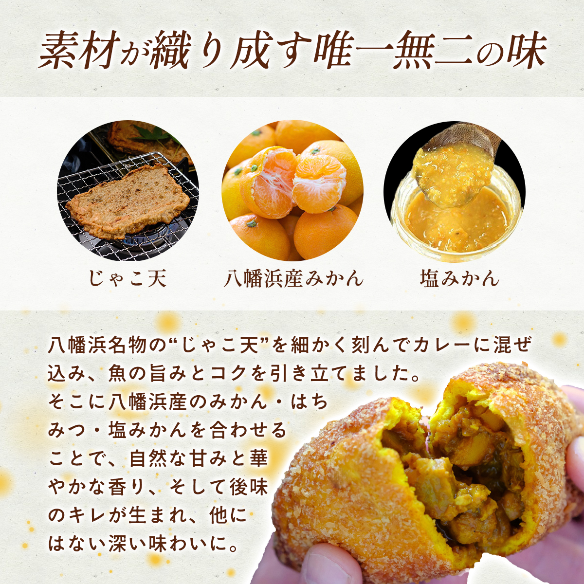 原材料:強力粉(国産地鶏)、スパイスカレー(鶏肉、人参、玉ねぎ)、パン粉、砂糖、じゃこ天、卵、サラダ油、はちみつ、みかん蜜、ドライイースト、塩、香辛料(一部に小麦、乳成分、卵を含む)